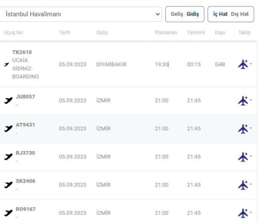 Türk Hava Yolları'nın İstanbul -Diyarbakır seferini yapan Airbus 321 tipi uçağı saat 17.35'de İstanbul Havalimanı'ndan havalandı.