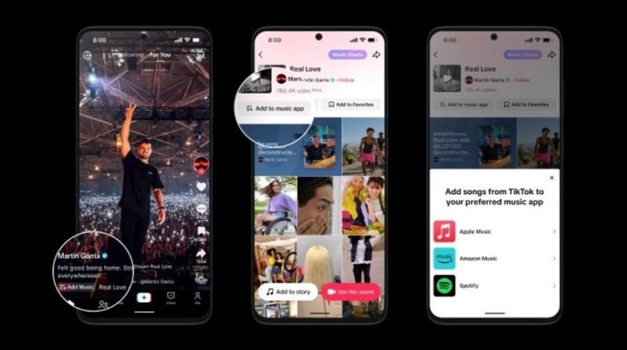 Video paylaşım platformu Tiktok, Spotify, Amazon Music ve Apple Music gibi platformlar ile yaptığı işbirliği sayesinde artık kullanıcıların diledikleri müzikleri "Müzik uygulamasına ekle" özelliğiyle doğrudan kütüphanelerine kaydetmelerini sağlayacak.