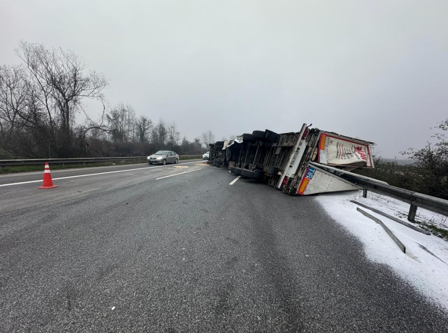 Düzce'de plastik granül yüklü TIR, bariyerlere çarparak devrildi. Kazada şoför yaralanırken, yola saçılan malzeme nedeniyle Anadolu Otoyolu'nun bir bölümü kapandığı belirtildi.