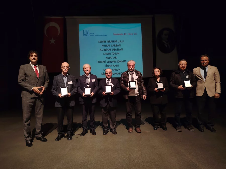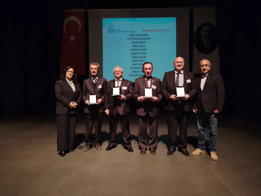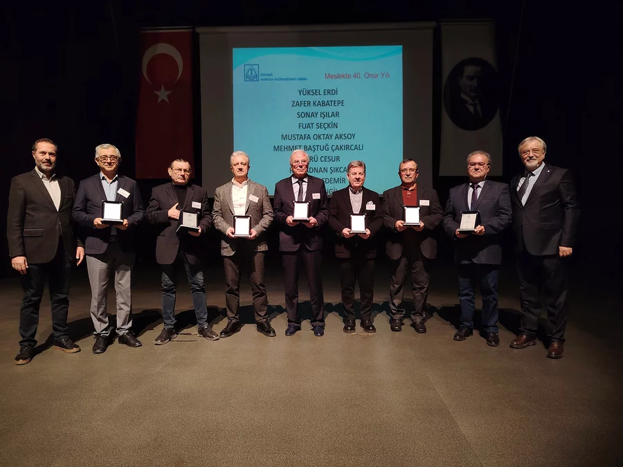Oda etkinliği sebebiyle plaket töreninde bulunamayan Makina Mühendisleri Odası Yönetim Kurulu'nun mesajının okunmasının ardından meslekte 60., 50., 40. ve 25. yılını dolduran TMMOB Makina Mühendisleri Odası Bursa Şube Üyelerine Onur plaketleri takdim edildi.