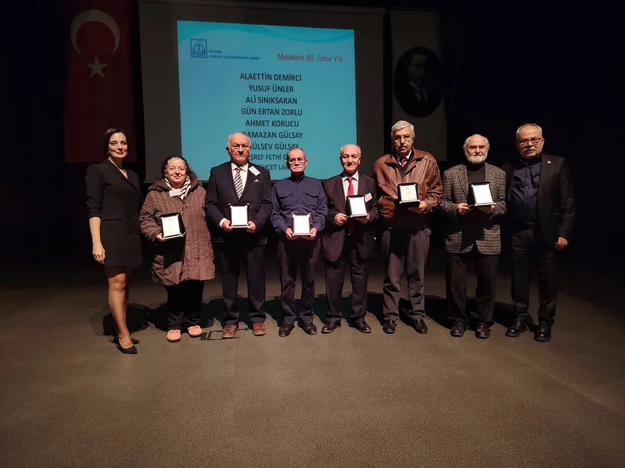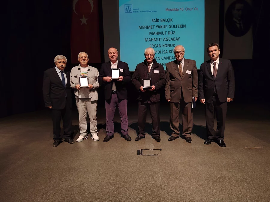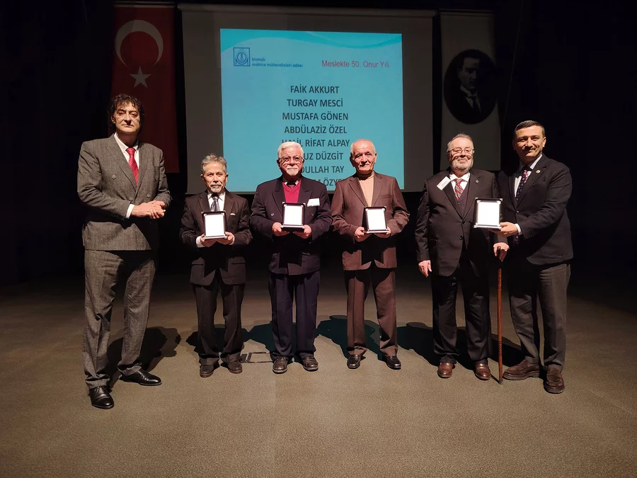 TMMOB Makina Mühendisleri Odası'nın kuruluşunun 71. yıl dönümü dolayısıyla, meslekte 60., 50., 40. ve 25. yılını dolduran TMMOB Makina Mühendisleri Odası Bursa Şube Üyelerine onur plaketleri takdim edildi.