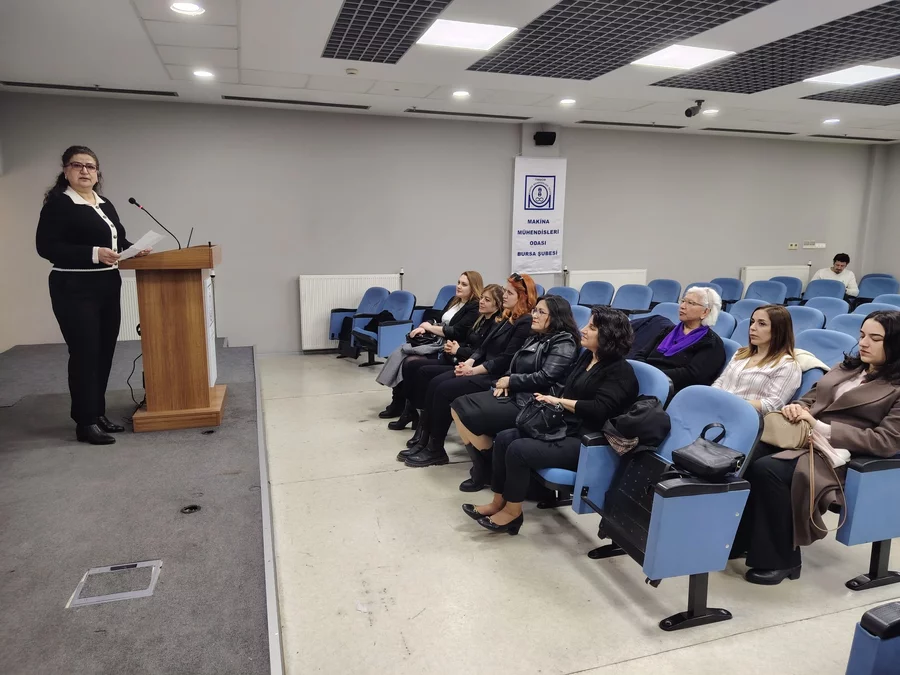 Basın açıklamasının ardından MMO Bursa Konferans Salonu'nda yapılan 'Kadın Hakları Bağlamında Medenî Kanun ve Güncel Durum' konulu panele geçildi.