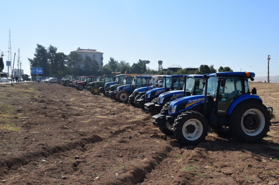 Batman'da mısır alım fiyatını az bulan çiftçiler Toprak Mahsulleri Ofisi'nin (TMO) yanındaki tarlaya traktörlerini park ederek eylem yaptılar.