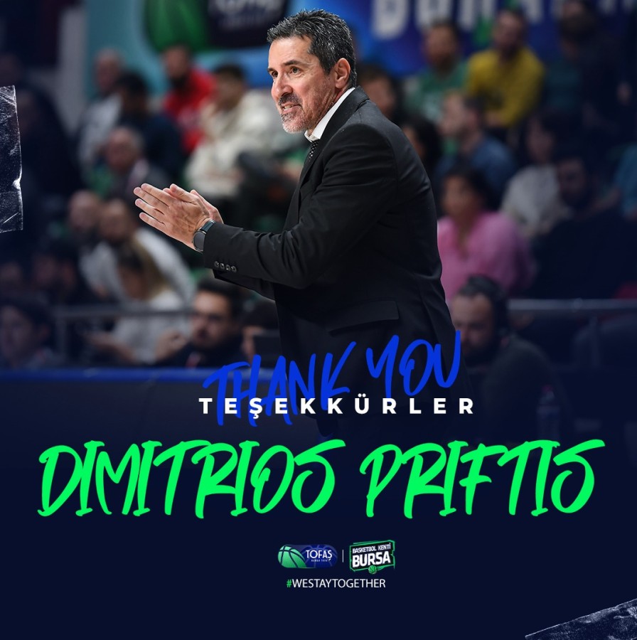 Türkiye Sigorta Basketbol Süper Ligi takımlarından Tofaş'ta, Başantrenör İmitrios Priftis ile yollar ayrıldı. Bursa ekibinden yapılan açıklama şu şekilde: