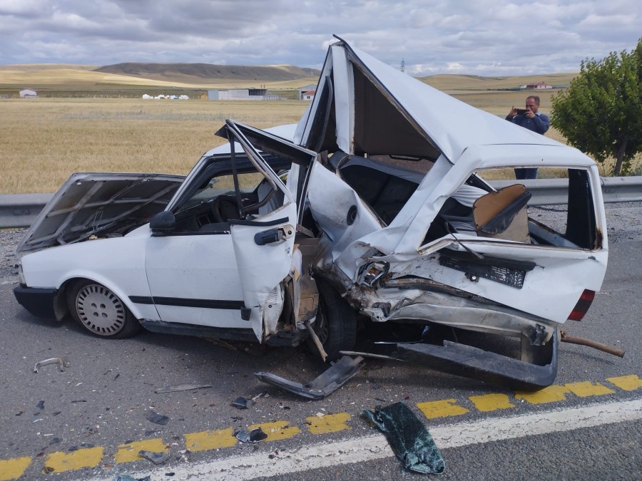 Ankara-Konya yolunda iki aracın çarpıştığı kazada, Tofaş marka otomobil kağıt gibi ezildi.
