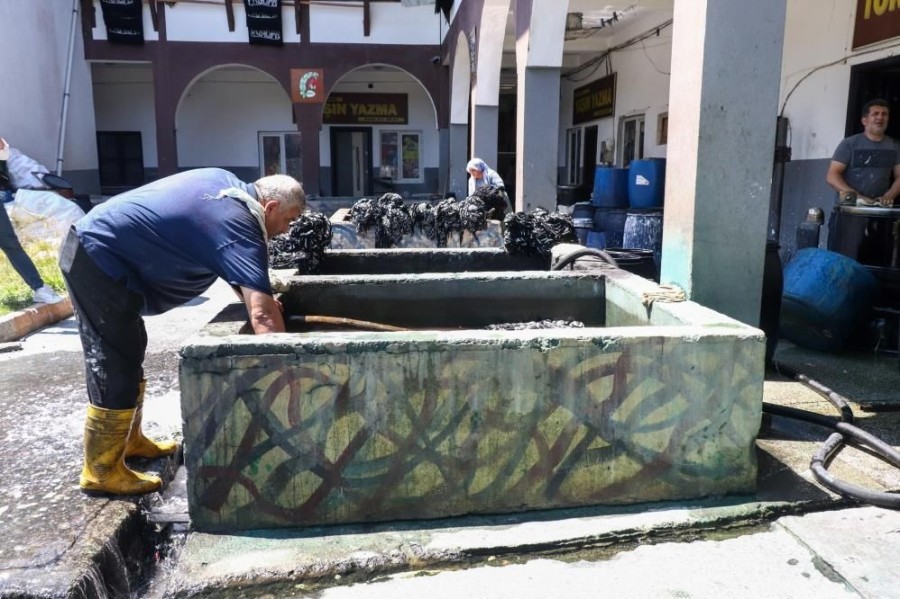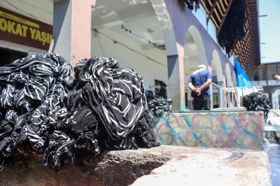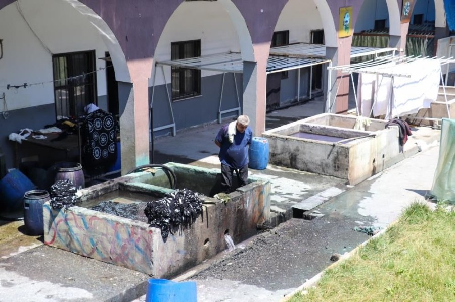 Tokat'ta eski usulle yapılan kumaş boyama işlemi, Hindistan'daki toplu çamaşır yıkama alanlarına benziyor.