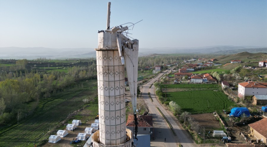 Dron'un çektiği görüntülerde, depremin vurduğu bölgelerde binaların yıkıldığı, cami minarelerinin düştüğü, kayalarla kapanan yolların iş makineleri ile açıldığı görüldü.