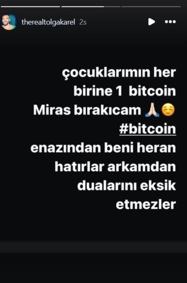 Yaprak Dökümü'nün Oğuz'u paylaşımında "Çocuklarımın her birine 1 bitcoin miras bırakacağım. En azından beni her an hatırlar arkamdan dualarını eksik etmezler" dedi.