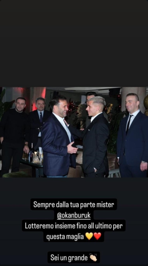 Lucas Torreira, yaptığı paylaşımla Buruk'un yanında olduğunu ifade etti.