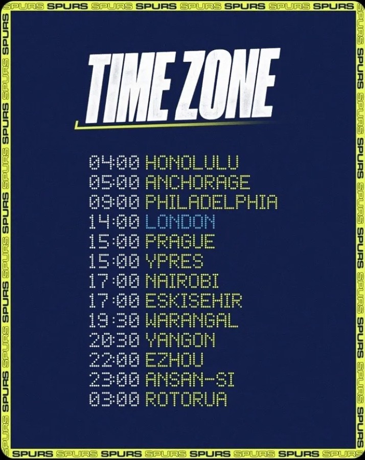 Dünyanın farklı şehirlerinden her hafta Tottenham'ın maçını izleyecek taraftarlara, hangi saat diliminde maçı izleyebilecekleri konusunda bilgi veren tabloda bu seferİngiltere'nin büyük takımlarından birisi olan Tottenham Hotspur, bugün oynayacağı lig maçı öncesi sosyal medya üzerinden ilginç bir paylaşımda bulundu. Dünyanın farklı şehirlerinden her hafta Tottenham'ın maçını izleyecek taraftarlara, hangi saat diliminde maçı izleyebilecekleri konusunda bilgi veren tabloda bu sefer Eskişehir'e de yer verildi. "Dünya'nın neresinden bizi izleyeceksiniz?" yazılı paylaşımda farklı ülkelerden birçok şehir kullanıldı. Çekya, Belçika ve Nijerya'nın da şehirlerinin bulunduğu paylaşımda Eskişehir'i görenler yorumlarda şaşkınlıklarını gizleyemedi. İngiliz devinin Eskişehir paylaşımı kısa zamanda sosyal medya üzerinde binlerce beğeni aldı.'e de yer verildi. "Dünya'nın neresinden bizi izleyeceksiniz?" yazılı paylaşımda farklı ülkelerden birçok şehir kullanıldı. Çekya, Belçika ve Nijerya'nın da şehirlerinin bulunduğu paylaşımda Eskişehir'i görenler yorumlarda şaşkınlıklarını gizleyemedi. İngiliz devinin Eskişehir paylaşımı kısa zamanda sosyal medya üzerinde binlerce beğeni yağdı.