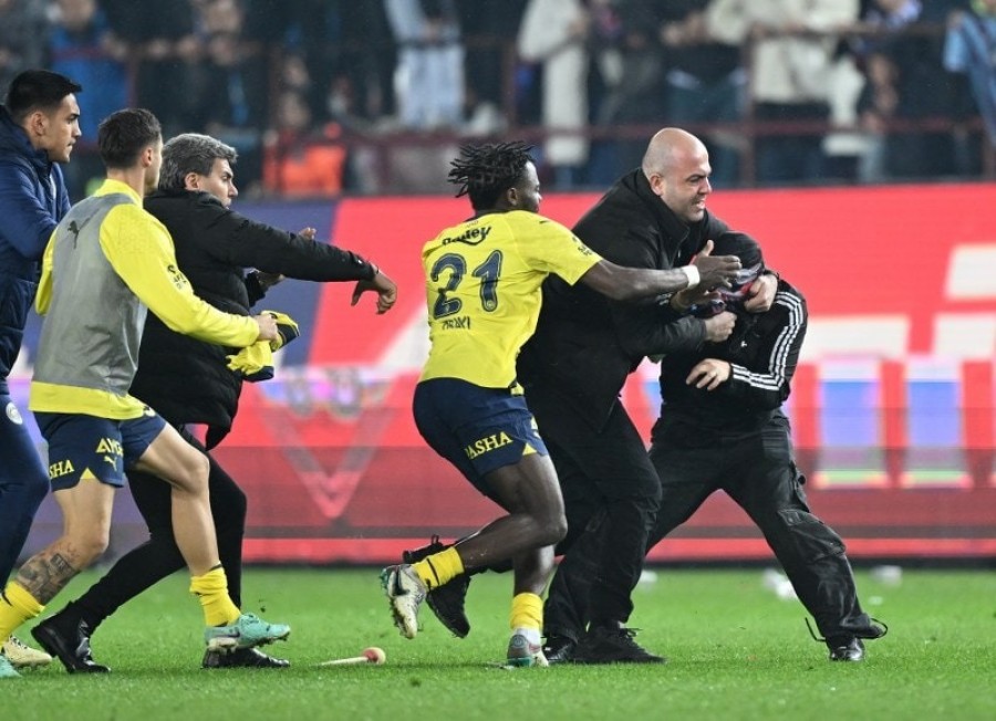 Sahaya giren taraftarlar Fenerbahçeli futbolculara saldırdı. Oyuncular da çıkan arbedede sahaya giren kimliği belirsiz kişilerle yumruklaştı.