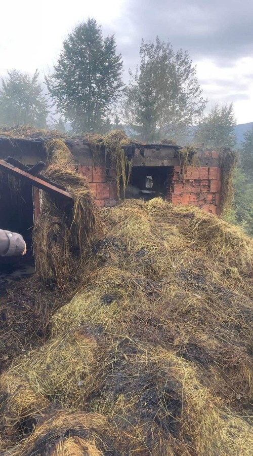 Üst katı saman dolu olan ahır, kısa sürede alev alırken 1 inek de öldü.