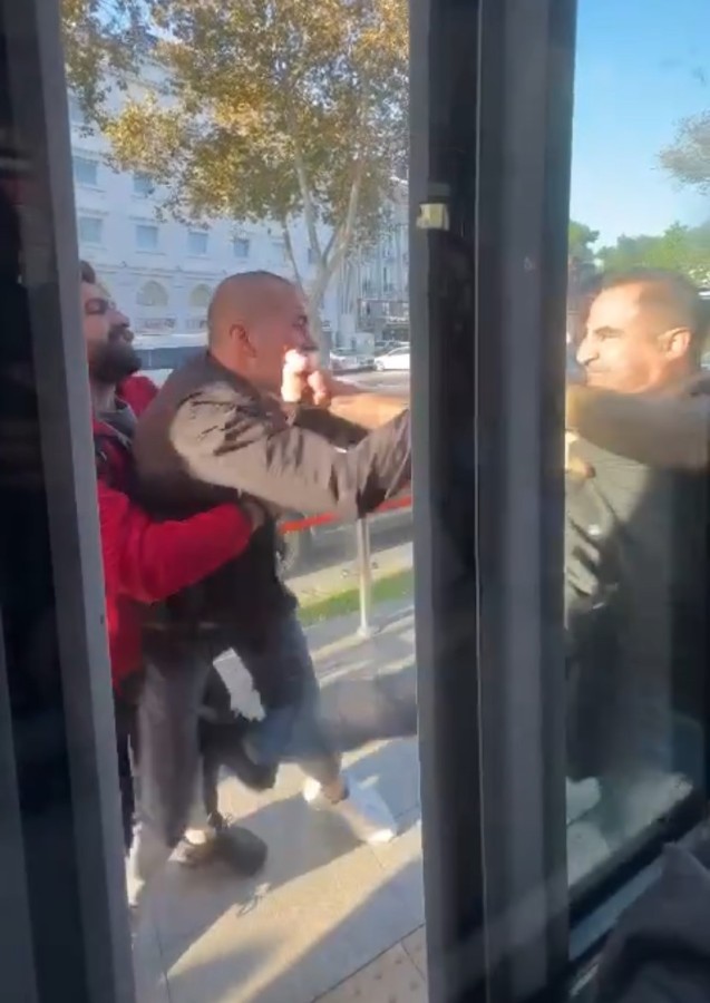 İstanbul Fatih'te bulunan Pazartekke durağında, tramvayda yaşanan yoğunluk nedeniyle tartışan iki yolcu birbirine yumruklarla saldırdı. Tramvay durağı boks ringine dönerken başka bir yolcu o anları cep telefonu kamerasıyla kaydetti.