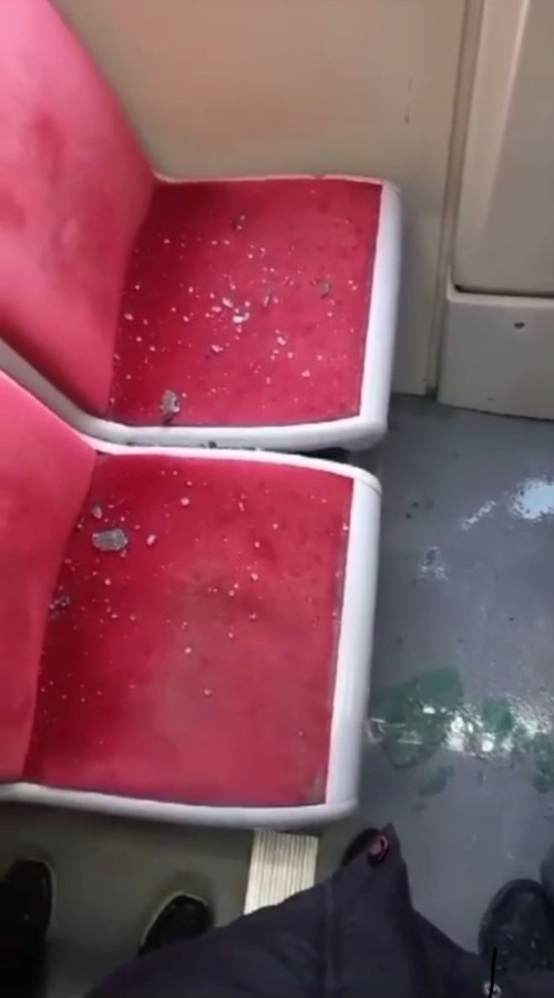 TRAMVAYIN AÇILAN KAPAĞI CAMI PATLATTI