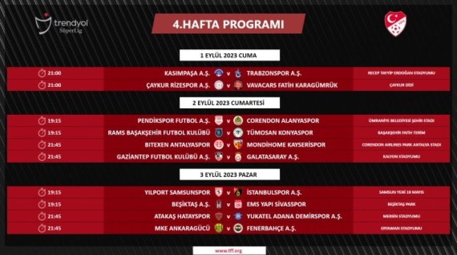 Trendyol Süper Lig'de 2023/2024 sezonunun 3. ve 4. hafta programları duyuruldu.