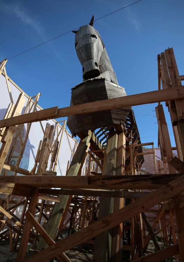 Çam kerestesi kullanılarak inşa edilen tahta atın içine giren ziyaretçiler, Homeros'un İlyada ve Odysseia destanlarında milattan önce 500'lü yıllardaki Troya Savaşı'nda geçen savaş hilesini daha iyi anlama imkanı elde ediyor.