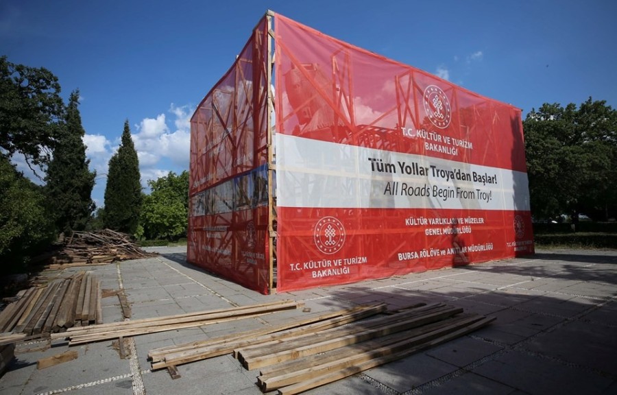 Çanakkale merkeze bağlı Tevfikiye köyü girişinde 5 bin 500 yıllık geçmişe ev sahipliği yapan Troya Antik Kenti'ndeki tahta atın, Kültür ve Turizm Bakanlığı tarafından yenilendiği belirtildi.