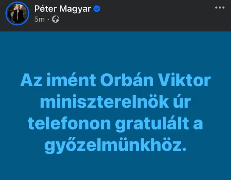 Magyar "Az önce Başbakan Viktor Orbán telefonla arayarak zaferimizden dolayı beni tebrik etti" diye yazdı.