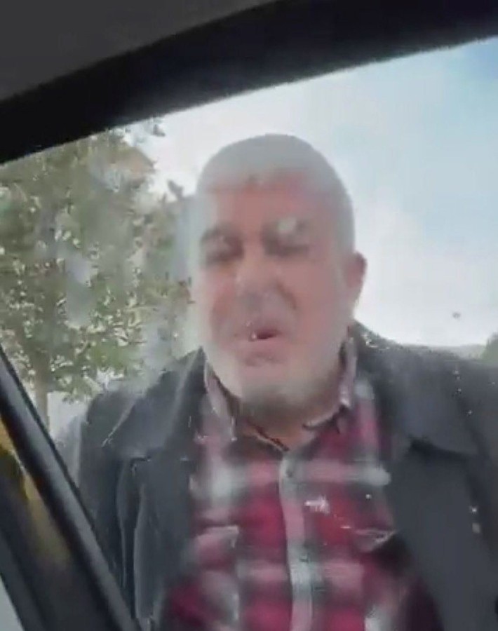 Kadın sürücünün kullandığı cipin kapılarının kilitli olması üzerine cipin camına tüküren minibüs sürücüsü, daha sonra aracına binerek uzaklaştı.
