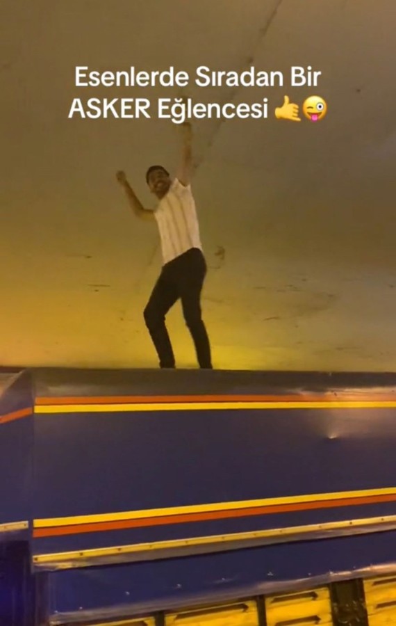 İstanbul Esenler'de asker uğurlaması yapan bir grup, kamyonetle girdikleri tüneli trafiğe kapattı. Bununla yetinmeyen gruptakiler, araçlarının tavanına çıkıp dans etti.