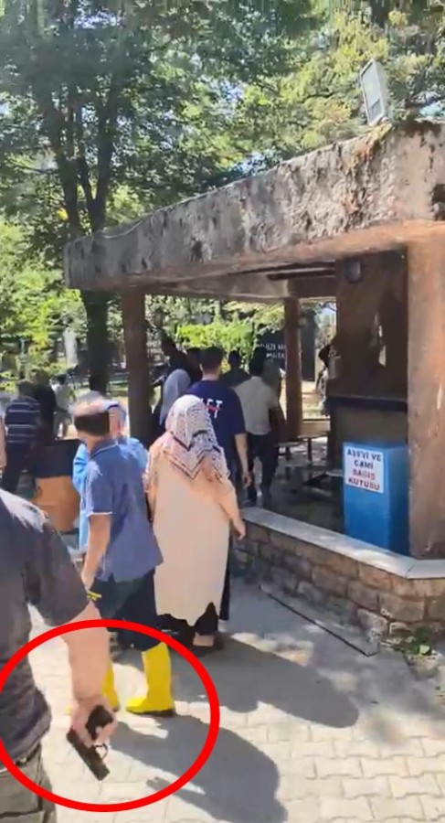 Bu sırada, türbeyi ziyaret etmeye gelen bir vatandaş, kavgayı sonlandırmak için belindeki tabancayı çıkarıp havaya 2 el ateş açtı.