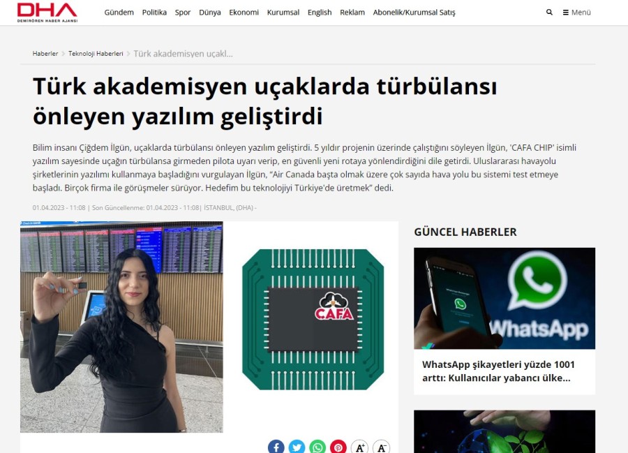 Çiğdem İlgün'ün türbülansı önleyen çip icat ettiğini iddia ettiği haberler, basında böyle yer almıştı.