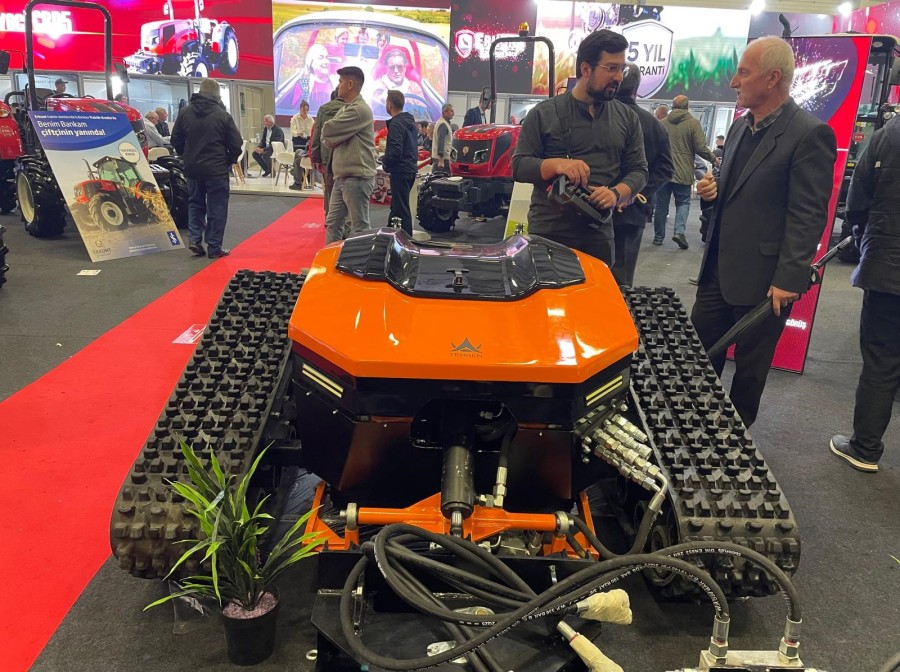 Traktörler ve teknolojik ürünlerin sergilendiği Bursa Tarım Fuarı'nda uzaktan kumandalı tarım makinesi genç yaşlı tüm çiftçilerin ve alım heyetlerinin ilgisini çekti.