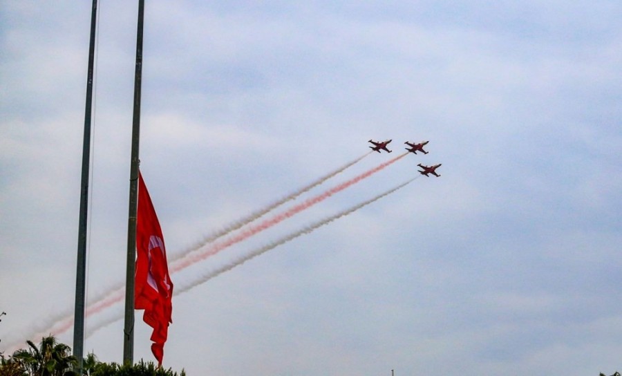 Türk Hava Kuvvetleri'nin akrobasi timi Türk Yıldızları, Türkiye Cumhuriyeti'nin kurucusu Büyük Önder Mustafa Kemal Atatürk'ün ebediyete intikalinin 86'ıncı yılında, Antalya Kültür Yolu Festivali kapsamında Ata'ya saygı uçuşu gerçekleştirdi.
