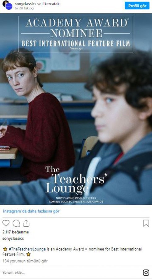Amerikan Sinema Sanatları ve Bilimleri Akademisi tarafından verilen ve film dünyasının en iyilerinin seçildiği Oscar Ödülleri'nin adayları belli oldu. Türk yönetmen İlker Çatak'ın 'The Teachers' Lounge' (Öğretmenler Odası) adlı filmi, En İyi Uluslararası Film dalında Oscar'a aday gösterildi.