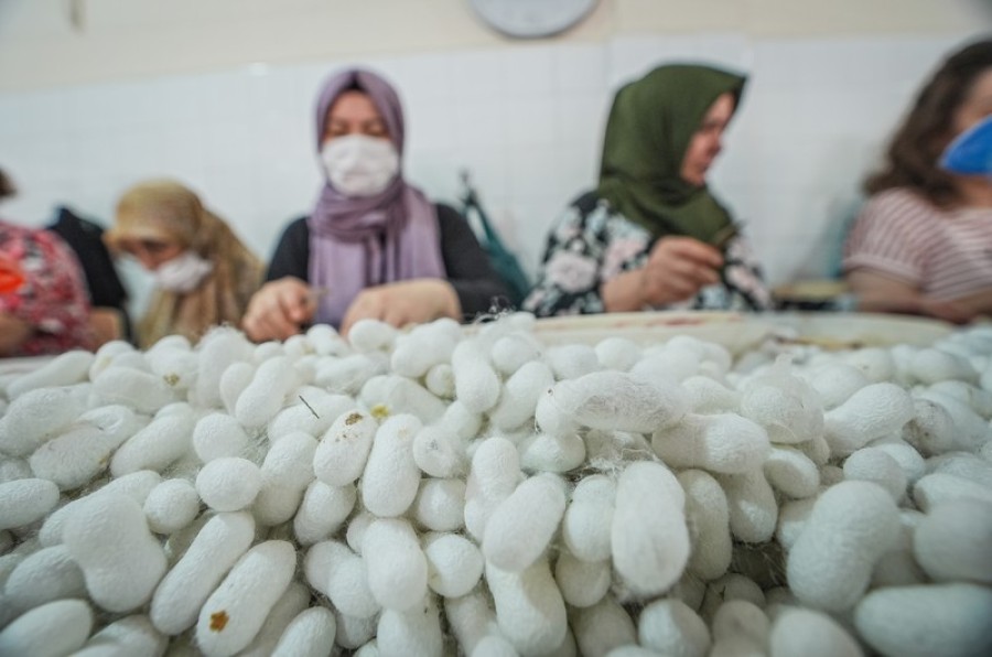 Tarihi ipek yolunun Anadolu'daki son durağı olan ve Osmanlı döneminde dünya saraylarını süsleyen ipeğin üretildiği Bursa'daki işletmede, Türkiye'nin ipek böceği yumurtası ihtiyacı karşılanıyor.