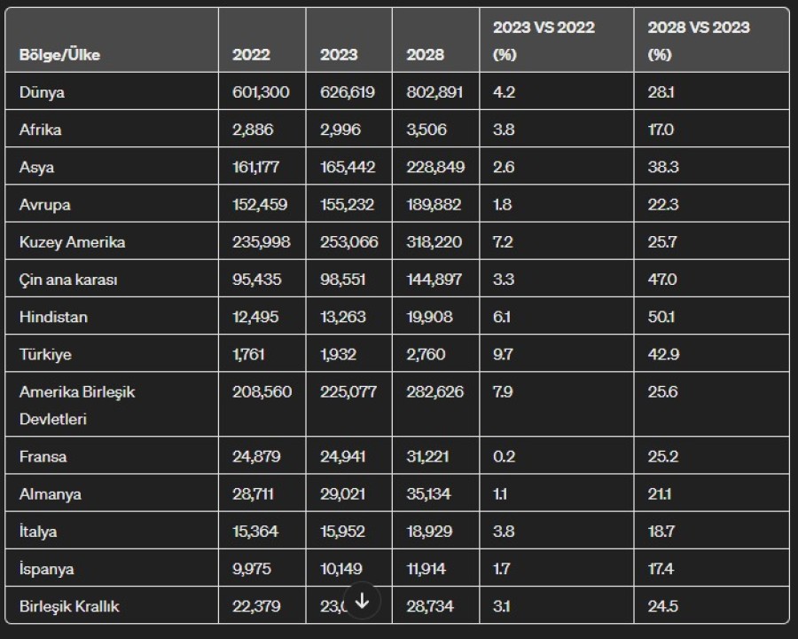 Rapora göre 2023'e kadarki beş yıllık dönemde yaşanan artış yüzde 44. Bu da gelecekte belirgin şekilde daha yavaş bir genişleme oranına işaret ediyor.
