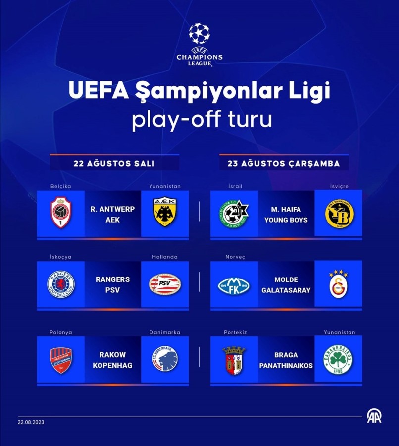Avrupa futbolunun kulüp düzeyindeki en önemli turnuvasında play-off turu ilk maçları, yarın ve 23 Ağustos Çarşamba günü oynanacak.
