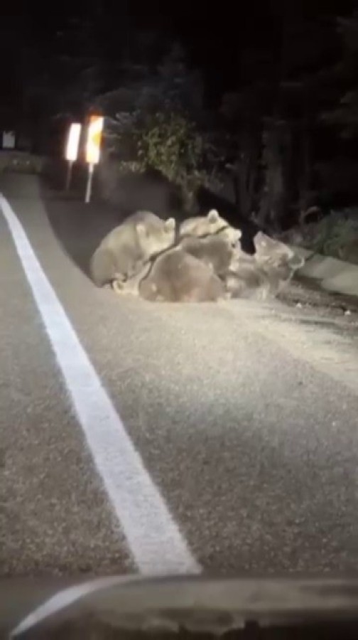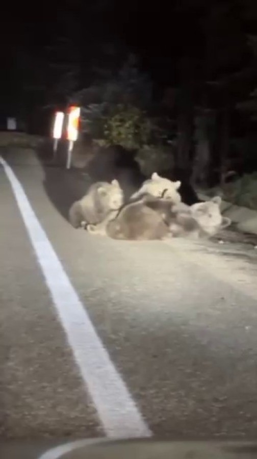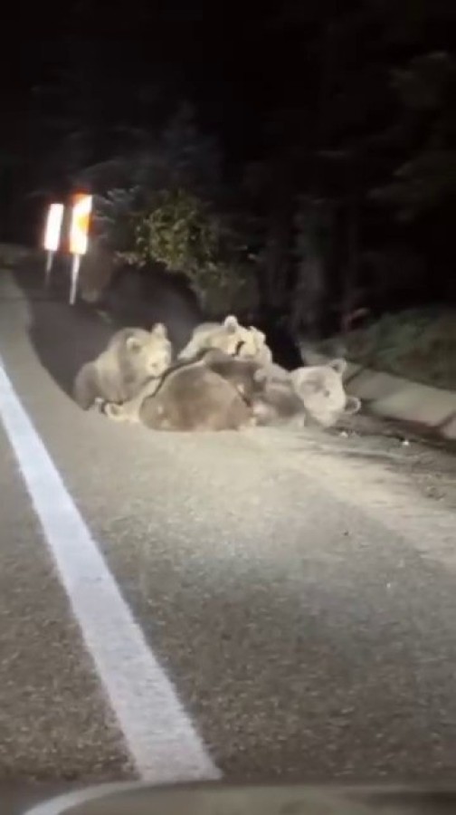 Görüntülerde, yolun kenarına yatarak 3 yavrusunu sakin bir şekilde emziren anne ayının son derece koruyucu tavırlar sergilediği dikkat çekti.