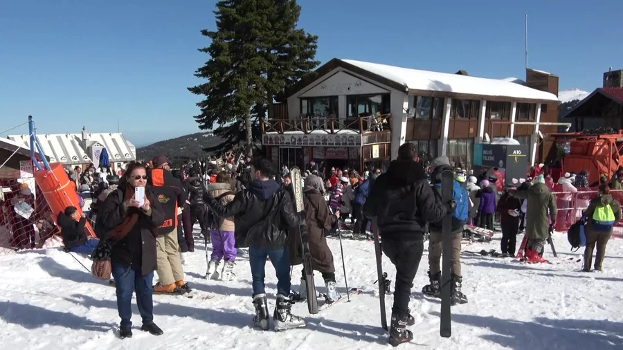 Türkiye'nin önemli kış turizmi merkezlerinden Uludağ'da güneşli havanın etkisiyle yoğunluk yaşandı. Zirvede yazdan kalma bir gün yaşayan tatilciler bol bol kayak keyfi yaptı.