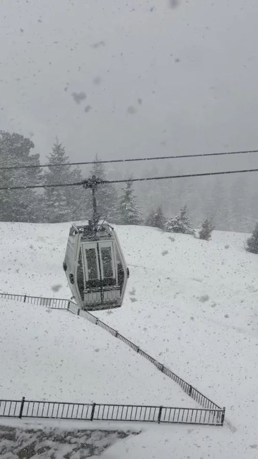 Türkiye'nin önemli kış turizm merkezlerinden Uludağ'da etkili olan kar yağışıyla birlikte zirve kısa sürede beyaza büründü. Nisan ayında yağan kar, vatandaşlarda hayrette kaldı, ortaya kartpostallık görüntüler çıktı.