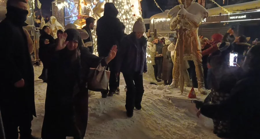 Uludağ'da müzik, eğlence ve havai fişek gösterileriyle süren yılbaşı kutlamaları, renkli anlara sahne olurken, yaşlı teyzenin dansı gecenin unutulmaz anı olarak hafızalara kazındı.