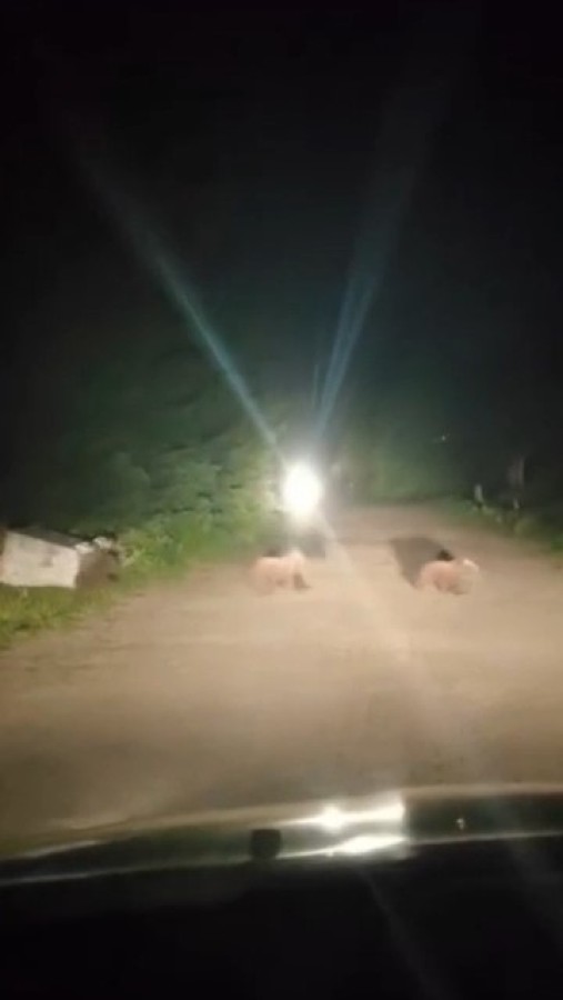 Ayı ailesinin görüntülerini o sırada yoldan geçen bir otomobil sürücüsü cep telefonu ile kaydetti.