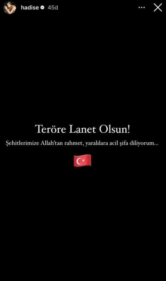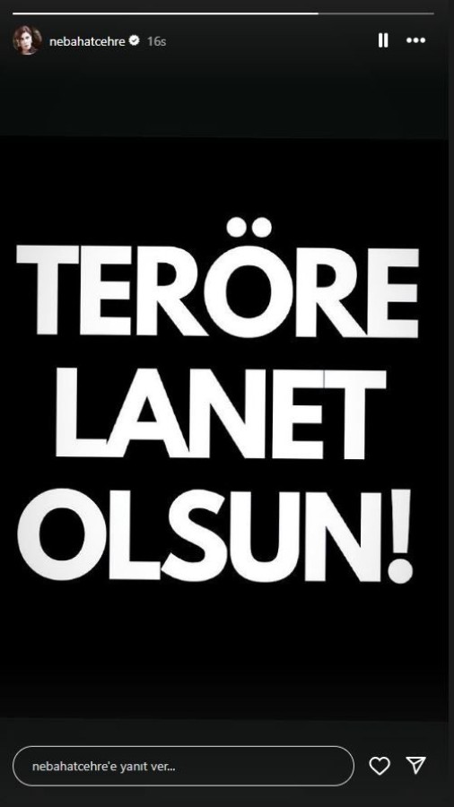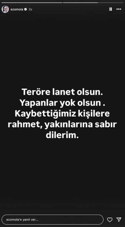 "Teröre lanet olsun. Yapanlar yok olsun. Kaybettiğimiz kişilere rahmet, yakınlarına sabır dilerim."