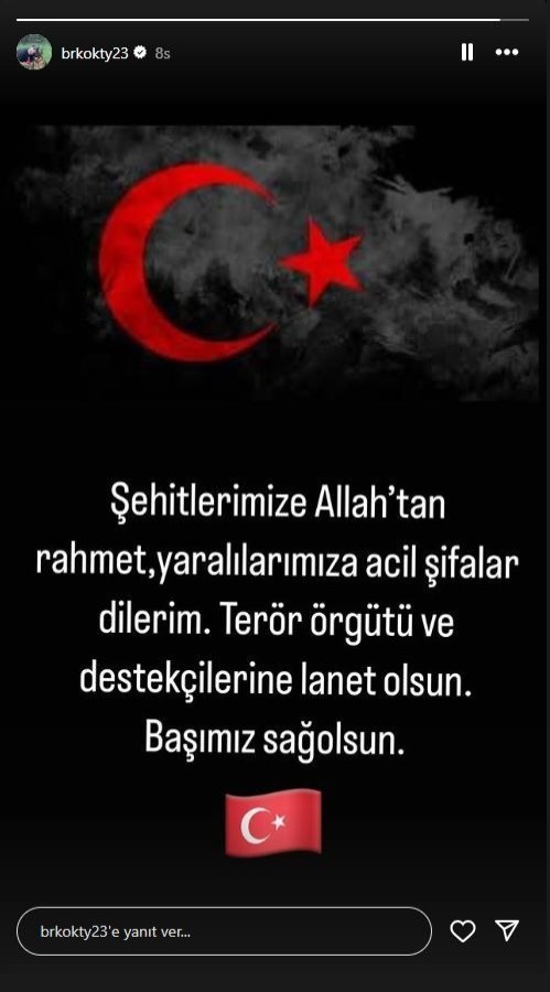 "Şehitlerimize Allah'tan rahmet, yaralılarımıza acil şifalar dilerim. Terör örgütü ve destekçilerine lanet olsun. Başımız sağ olsun."