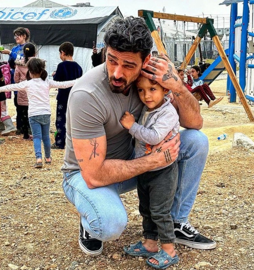 Geçtiğimiz günlerde günlerde sevgilisi Moara Sorio ile İstanbul'a gelen Michele Morrone, Hatay'daki çadırkenti ziyaret etti.