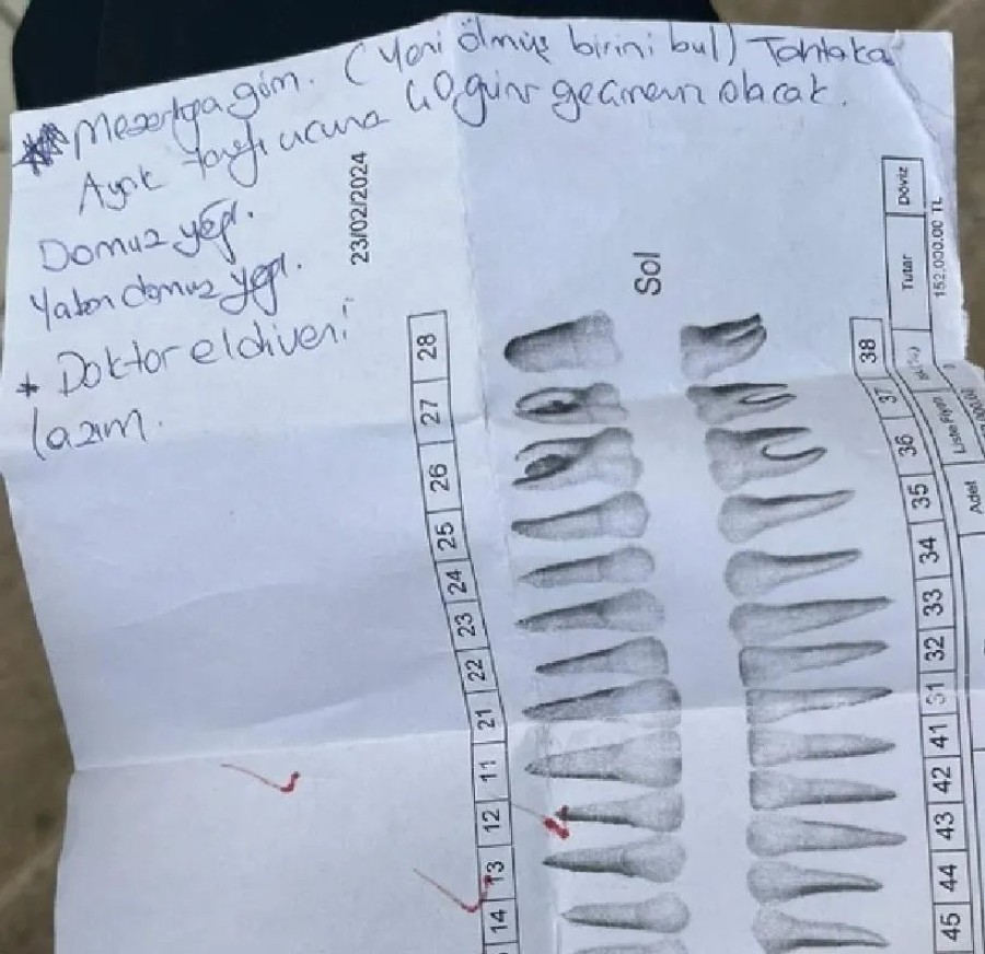 Domuz yağı ve mezarlıktan alınacak toprakla yapılacak bir büyünün yazılmış olduğu notta, "Ölümü en fazla 40 gün ölmuş birinin mezarını kazıp oradan toprak alınması gerekiyor" notu da bulundu.
