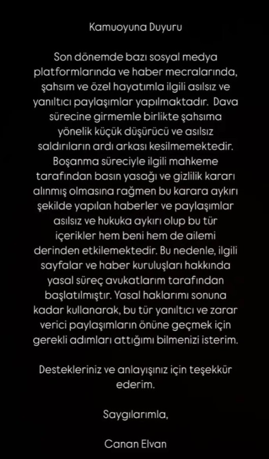 İddiaları yalanlayan Canan Çetin "Son dönemde bazı sosyal medya platformlarında ve haber mecralarında, şahsım ve özel hayatımla ilgili asılsız ve yanıltıcı paylaşımlar yapılmaktadır. "