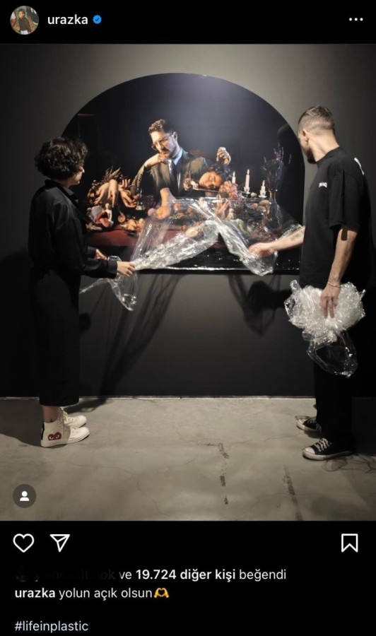 Sergideki tablosunun yanı başında sevgilisiyle birlikte poz veren Uraz Kaygılaroğlu bu pozu takipçileriyle de paylaşmayı ihmal etmedi. 36 yaşındaki ünlü ismin 'yolun açık olsun' notunu düştüğü karesini yoruma kapatması dikkat çekti.