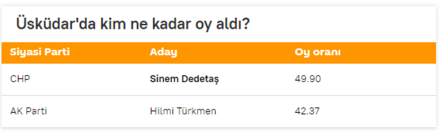 Üsküdar'da kim ne kadar oy aldı?