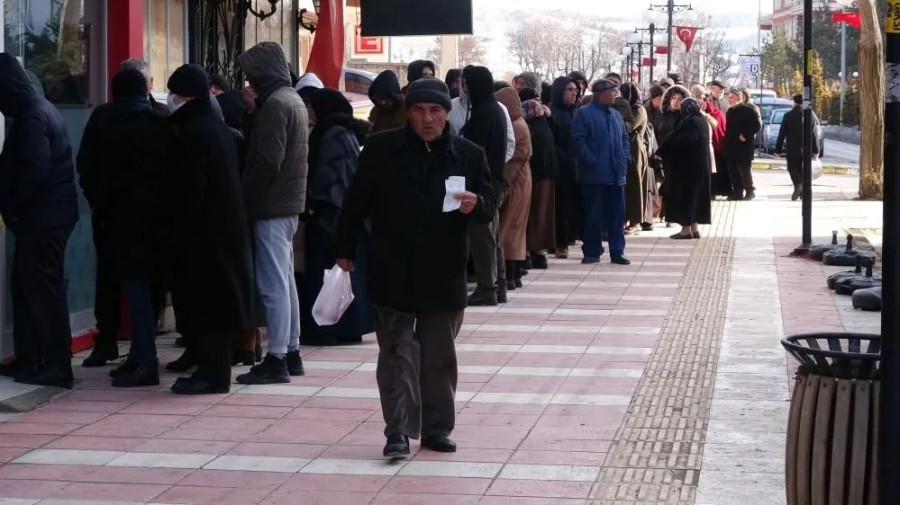 Yozgat'ta vatandaşlar uygun fiyata et ürünleri alabilmek için erken saatlerde Et ve Süt Kurumu Satış Mağazası önünde yoğunluk oluşturuyor.