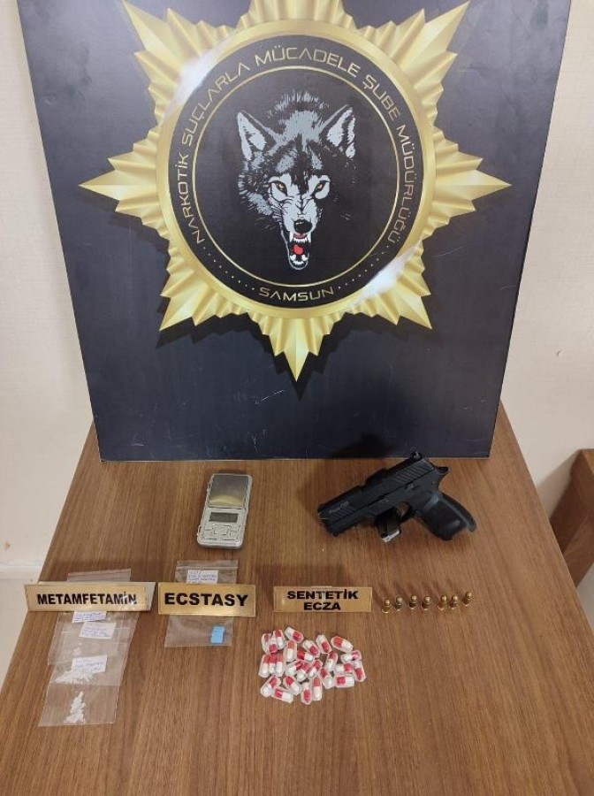 Yapılan aramalarda, 605,82 gram metamfetamin, 40 kapsül sentetik hap, 3 hassas terazi, 1 ruhsatsız tabanca, 7 tabanca mermisi, 2,78 gram esrar, 2 esrarlı sigara ve 3 ecstasy hap ele geçirildi.