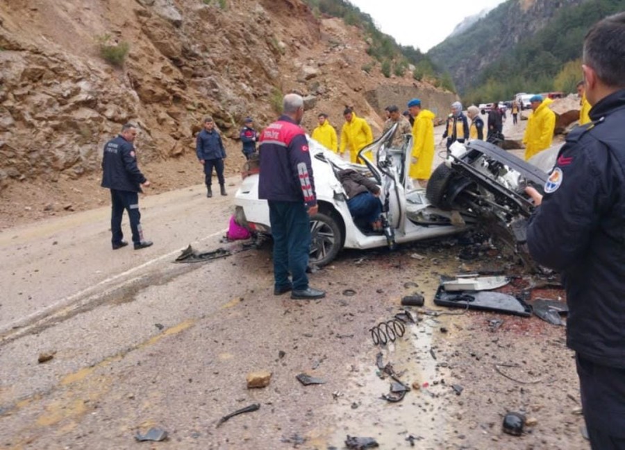 Adana'nın Saimbeyli ilçesinde, heyelan nedeniyle üzerine kaya devrilen otomobildeki 4 öğretmen hayatını kaybetti.
