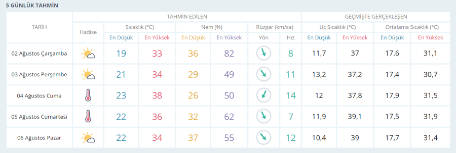 BURSA'NIN 5 GÜNLÜK HAVA TAHMİN RAPORU