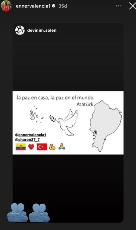 Ekvador'da yaşanan kartel olaylarına tepki gösteren Enner Valencia, Mustafa Kemal Atatürk'ün 'Yurtta Sulh Cihanda Sulh' sözünü paylaştı.