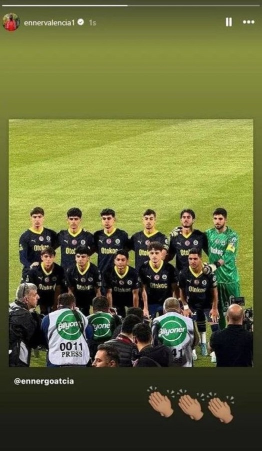 Enner Valencia, Süper Kupa maçı öncesi Fenerbahçe U19 Takımı'nın çektirdiği toplu fotoğrafı sosyal medya hesabından paylaştı. Valencia paylaşımına alkış emojisi ekledi.